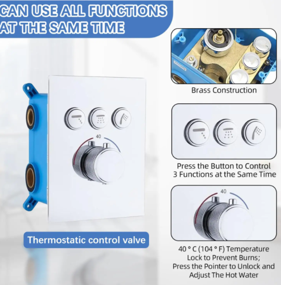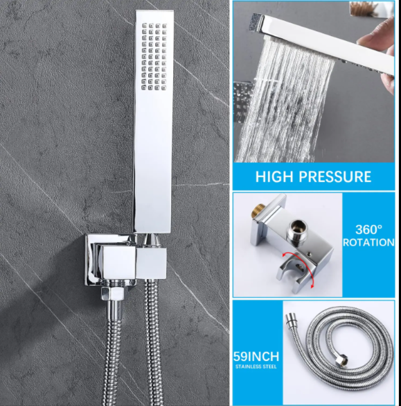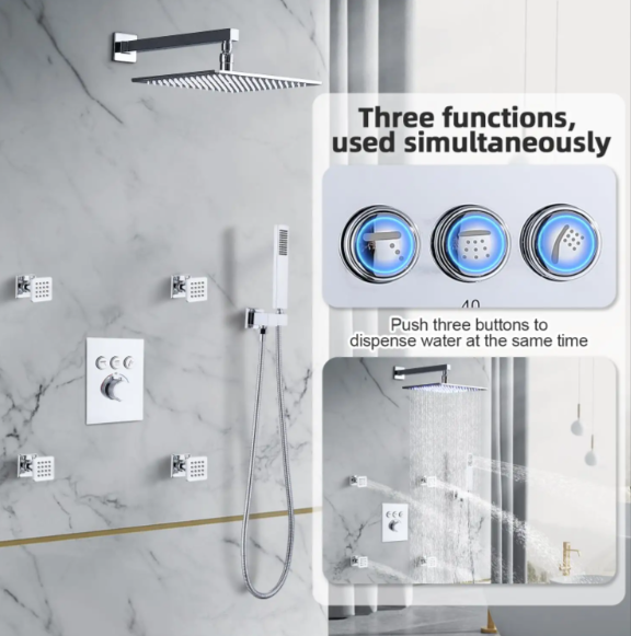 CHROME Square -CSA- 3 way function diverter thermostatic shower with hand spray and 6 spa body jets shower set
