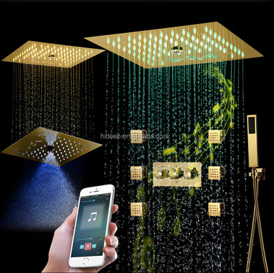 Chrome 23"x15" Ceiling Mount Rain Waterfall Bluetooth Music 5 Way Function Diverter LED Spa Shower System