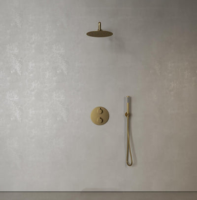 Brushed Gold Round Thermostatic with 2 way function diverter Shower Kit