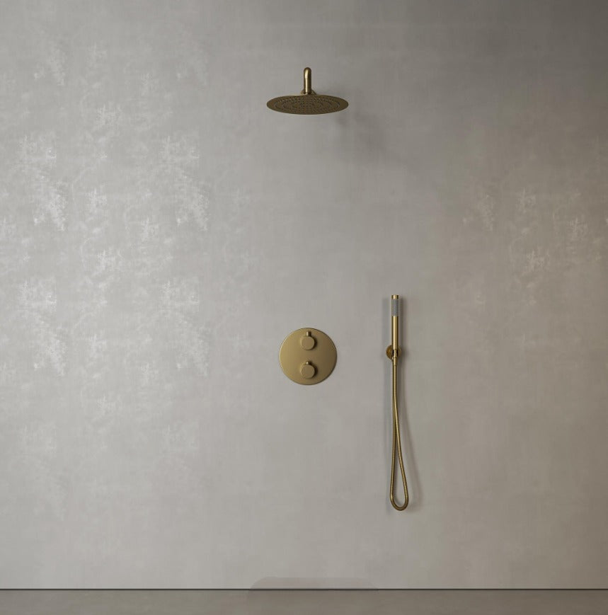 Brushed gold Round Thermostatic shower 2 way function and hand sprayer Kit-CSA