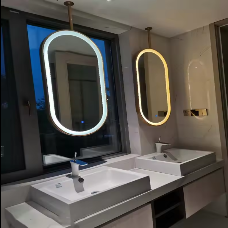 Metal frame Suspended Ceiling Waterproof Bathroom Makeup Hanging Sensing Hotel Led Mirror