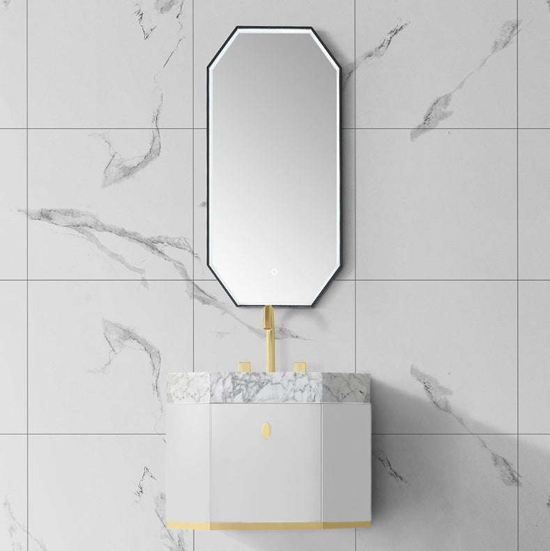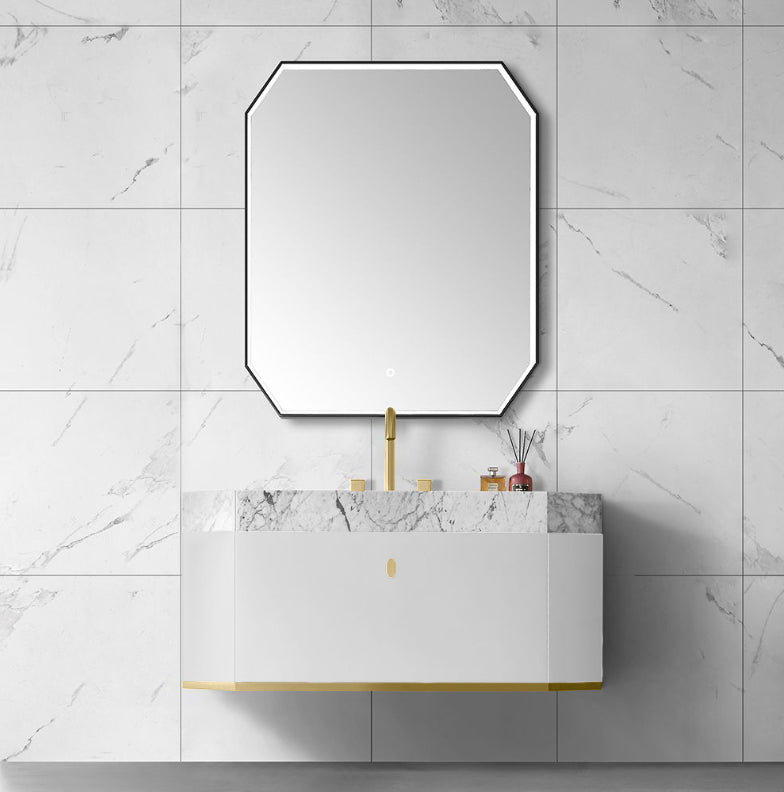 FINLAND- White matte-Brushed gold trim metal with Marble integrated sink