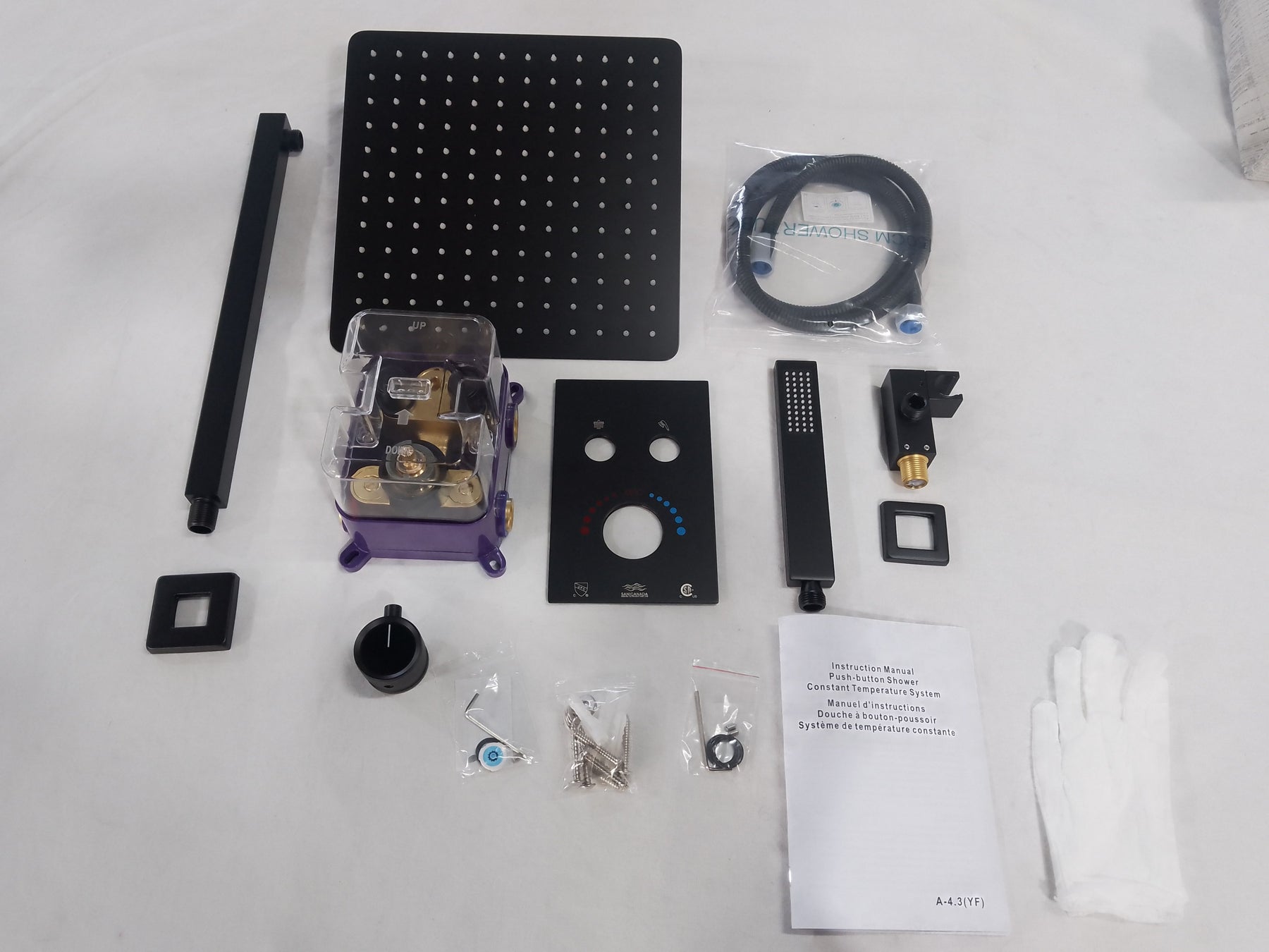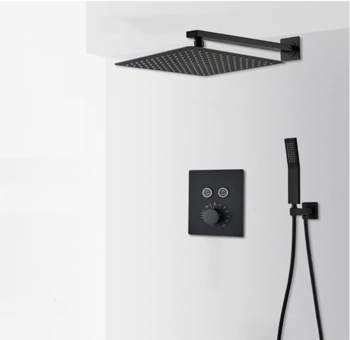 Black CSA -Square 12 Inch Rain 2 Way Functions Thermostatic Pressure balance shower kit